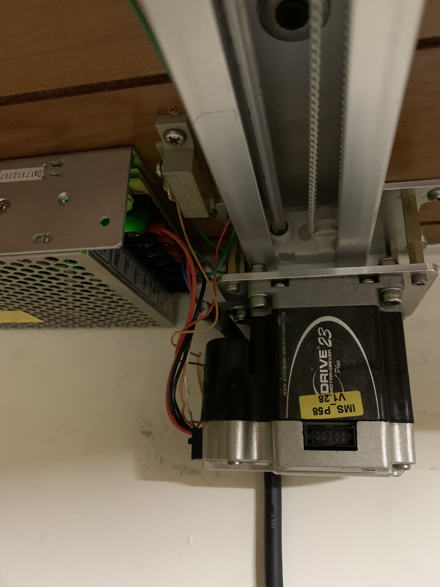 為了搭建數位攝影棚和方便日後直播使用,透過施耐德步進馬達把程式寫入內建的控制系統,以電源+馬達+控制按鍵和旋鈕和極限開關的最簡單架構作成一個電動窗簾控制系統。透過旋鈕可以調整希望的開閤速度和力量,透過按鍵可以選定開啟或關閉,放開按鍵或觸發極限開關後則停止動作。