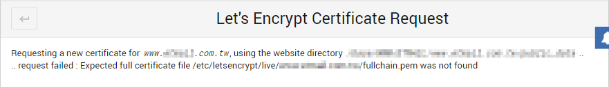 也就是在 /etc 之下建一個捷徑指到 /usr/local/etc/letsencrypt 即可。 這點要注意喔~~