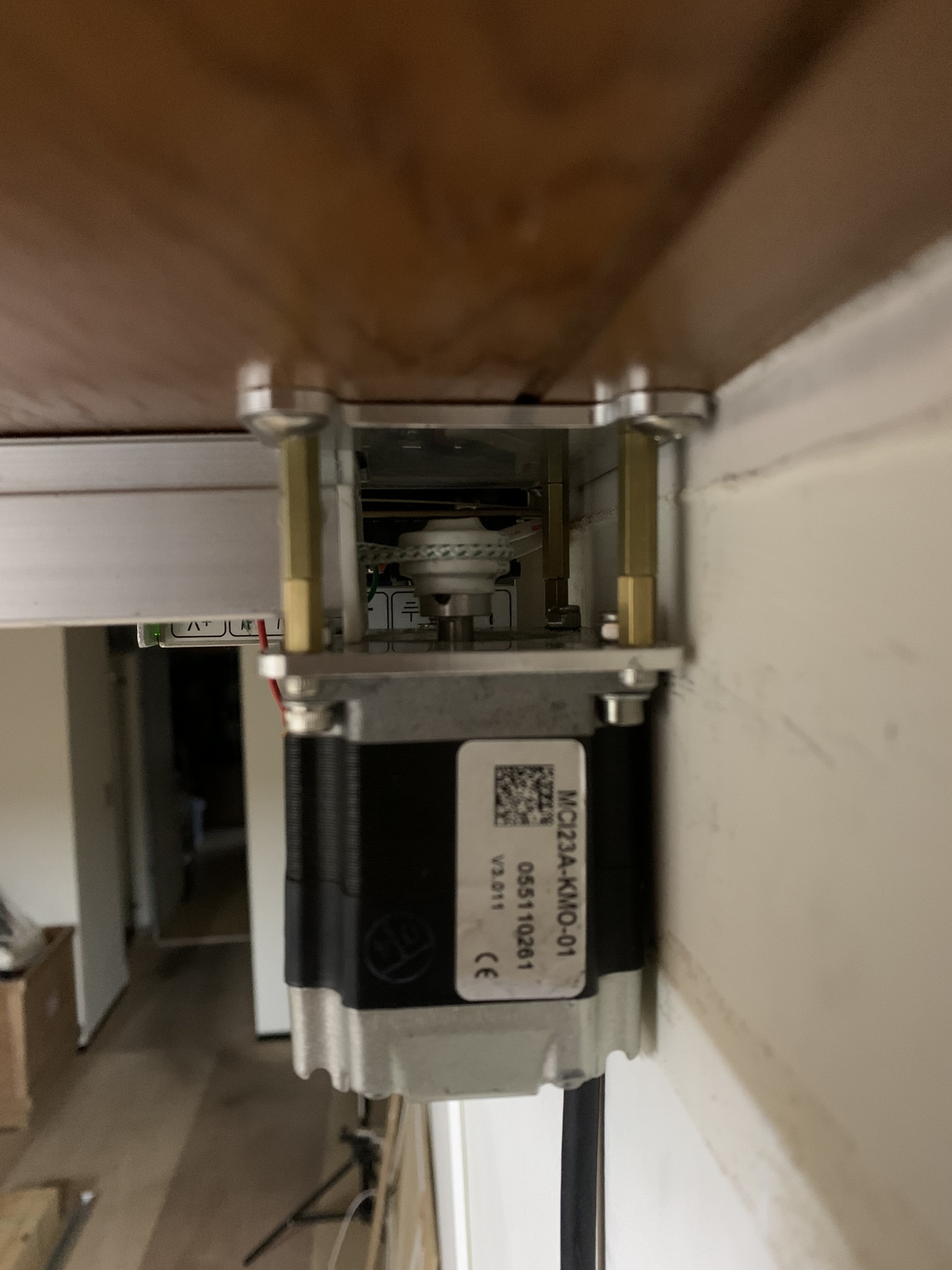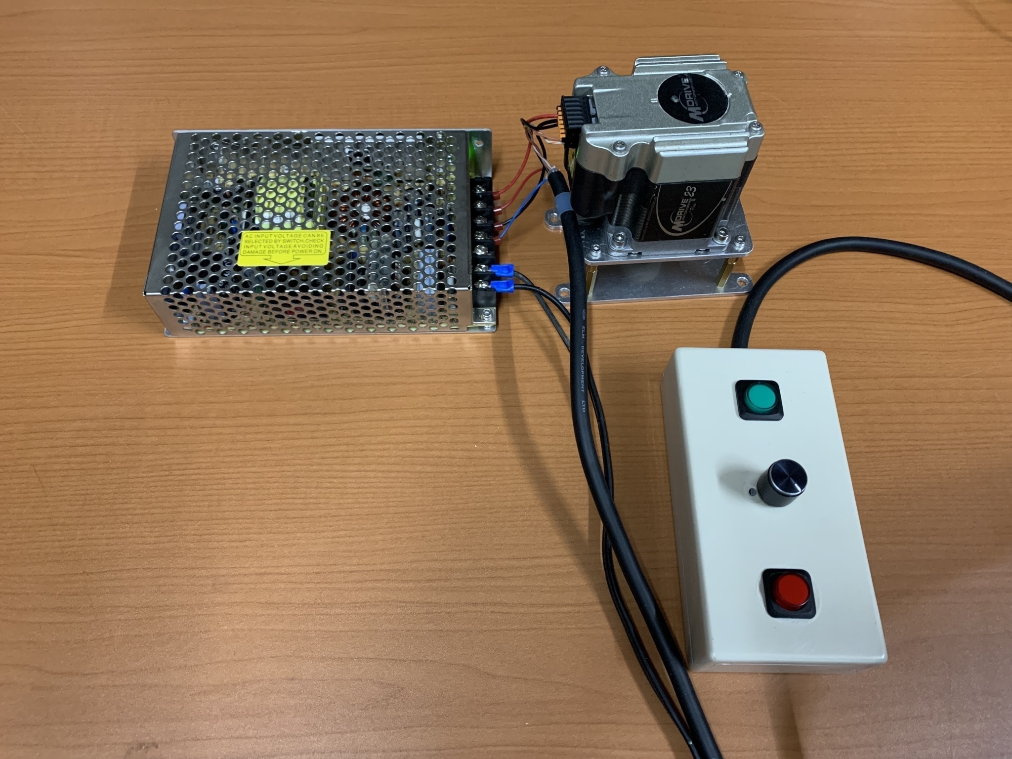為了搭建數位攝影棚和方便日後直播使用,透過施耐德步進馬達把程式寫入內建的控制系統,以電源+馬達+控制按鍵和旋鈕和極限開關的最簡單架構作成一個電動窗簾控制系統。透過旋鈕可以調整希望的開閤速度和力量,透過按鍵可以選定開啟或關閉,放開按鍵或觸發極限開關後則停止動作。