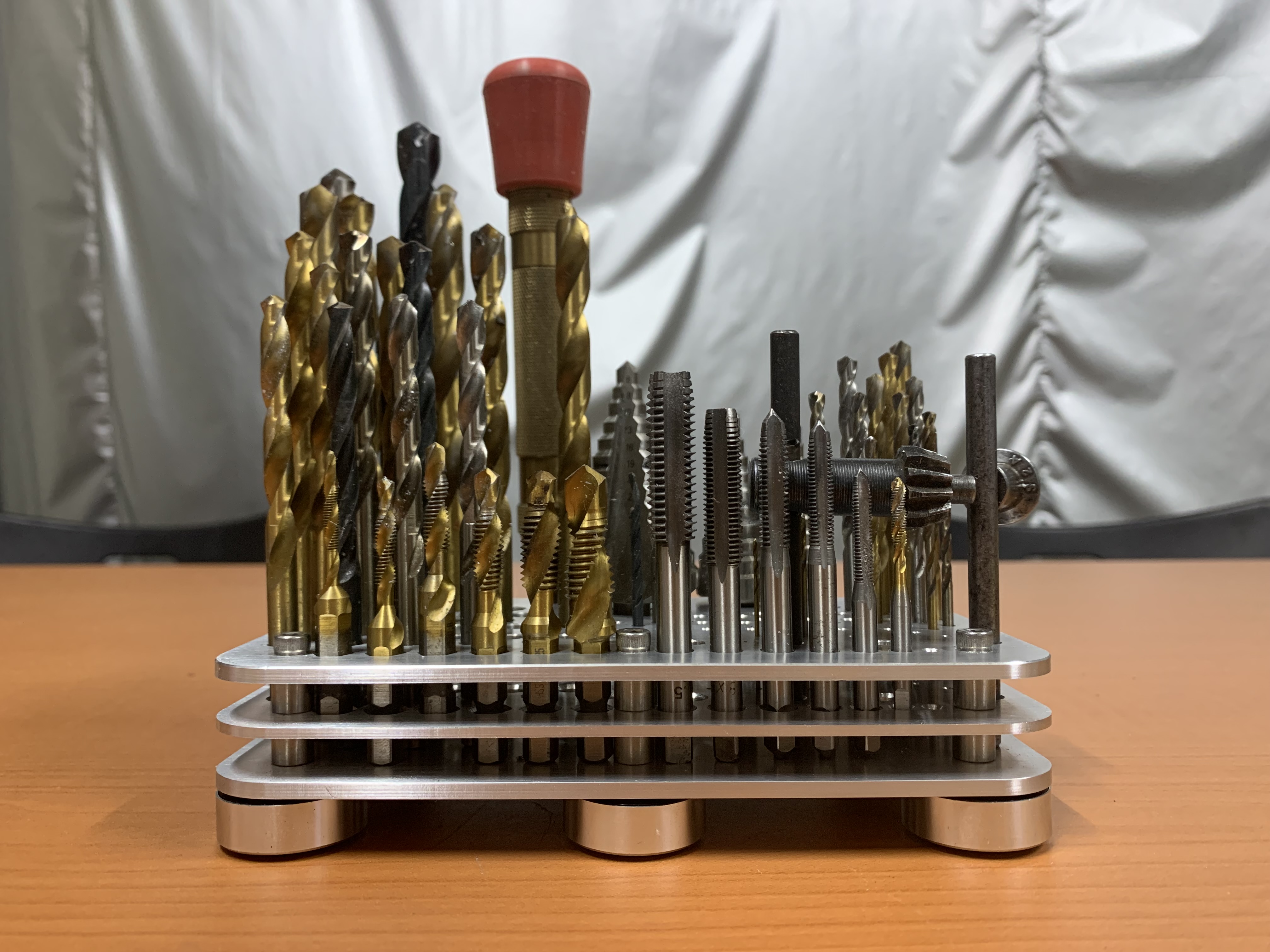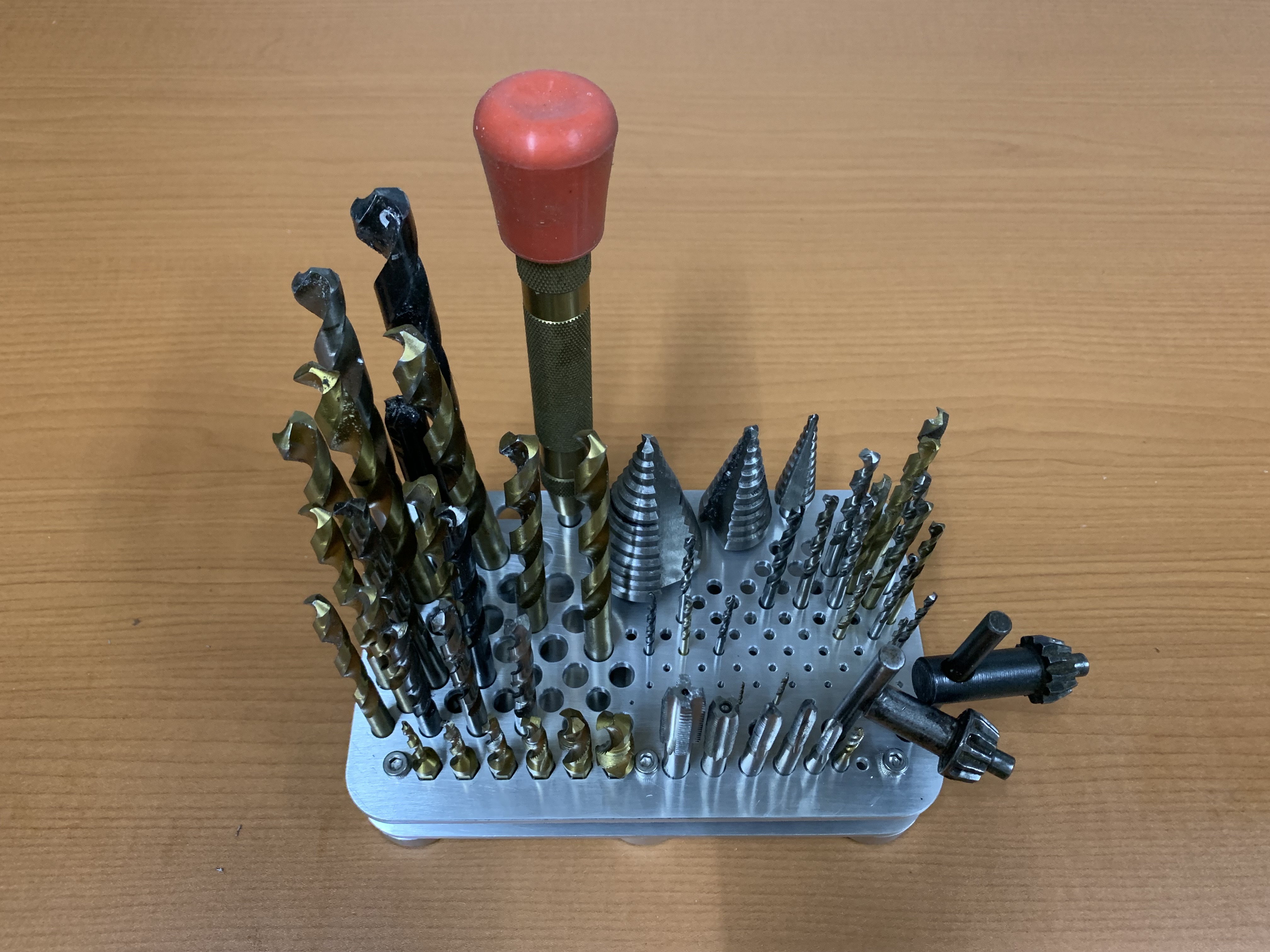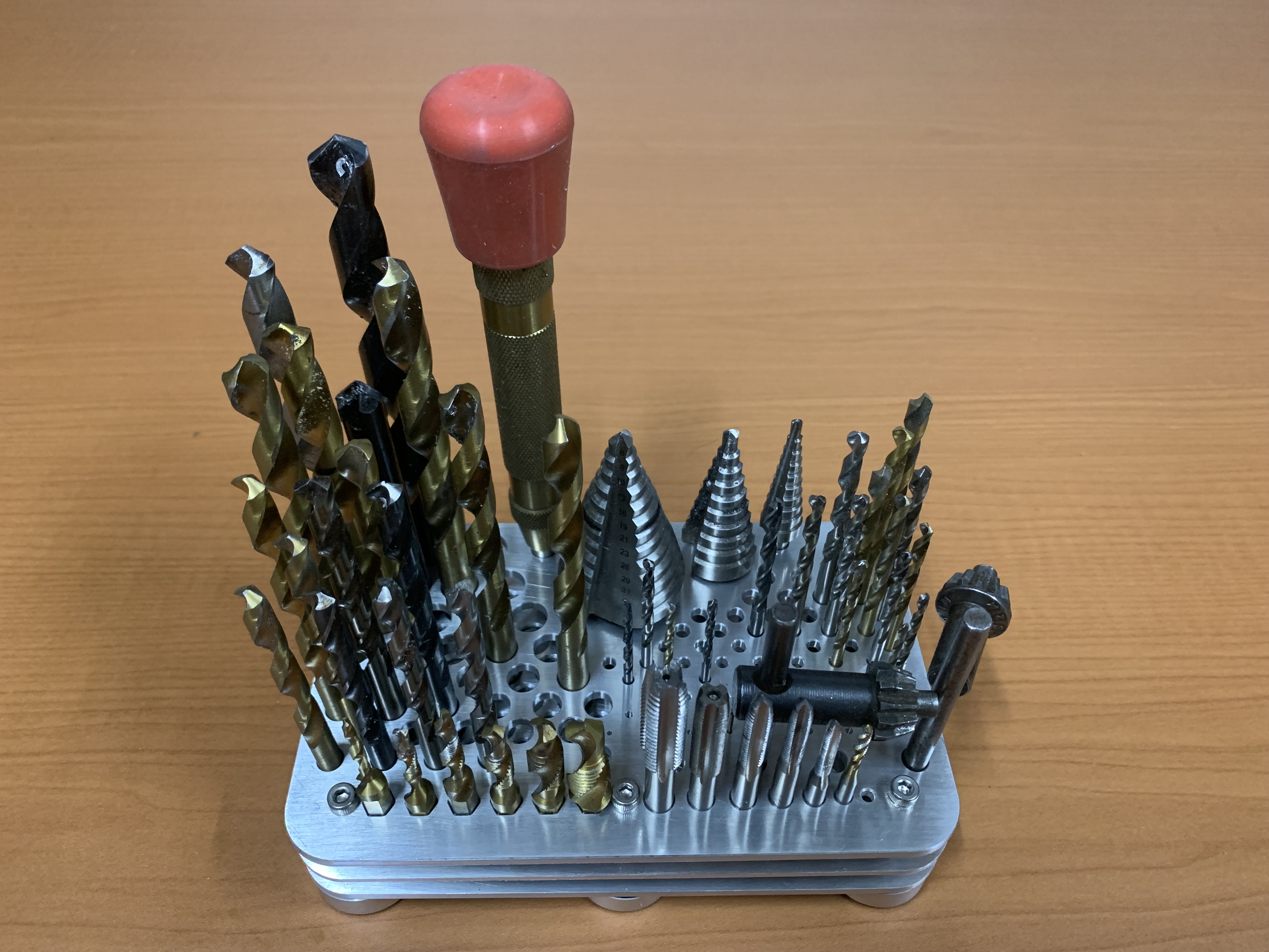 以前鑽頭都隨便丟在一個鐵盒子裡,隨著鑽頭越來越多,每次找鑽頭都得花個幾分鐘,趁疫情不能到處亂跑,就自己用 CNC 作一個鑽頭收納盒。原本是想用壓克力作的,但壓克力不耐用,小口徑的孔也鑽不了太深,所以決定改用鋁板製作。順便把它作成比較科技感一點~~~