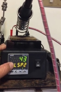以 azbil SDC15 為控制核心的溫控烙鐵,透過 PT100 測溫控制 SSR 供電,再用多組參數(SP)切換達到快速選定溫度的功能。 |